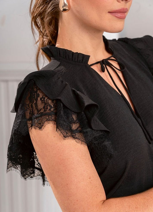 Blusa mangas bolero encaje