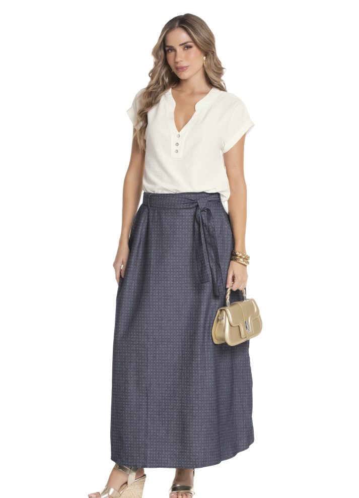 Blusa camisera manga corta escote en V, silueta amplia, confeccionada en poliéster.