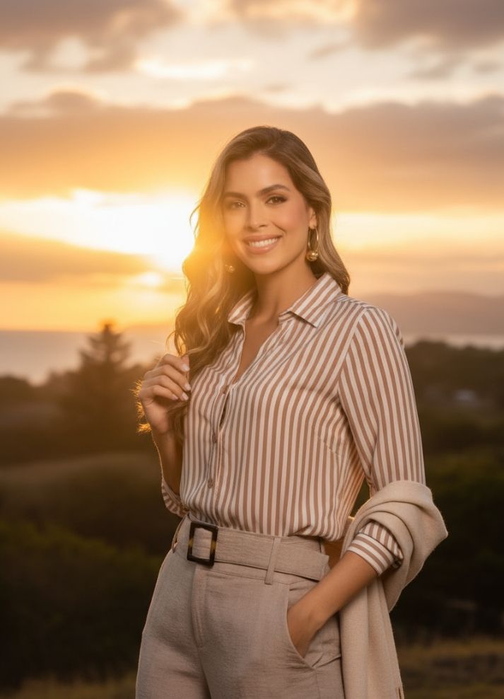 Camisa de manga larga, confeccionada en suave rayón viscosa, presenta un diseño de rayas en tonos beige que aporta una elegancia natural y discreta. Perfecta para combinar con prendas tanto formales como casuales, es una pieza versátil que enriquece cualquier guardarropa con sutil lujo y distinción.
