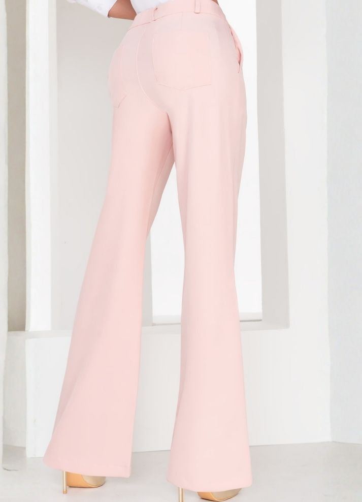 Pantalón palazzo tiro alto, con bolsillos, pretina alta con 1 botón, elaborado en tejido plano.