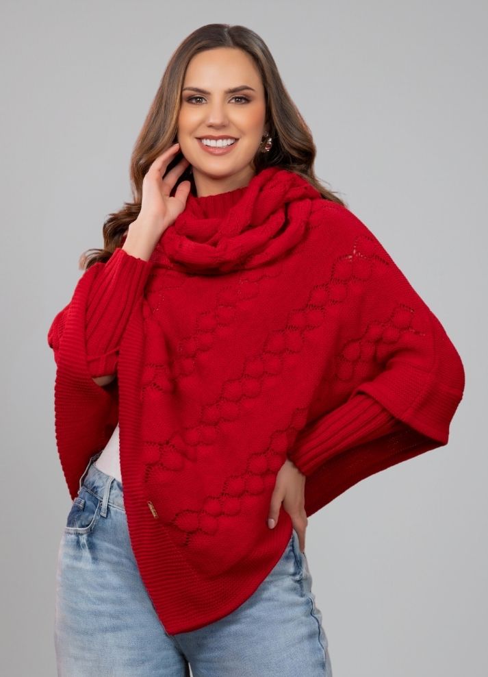 Ruana cuello tortuga con mangas