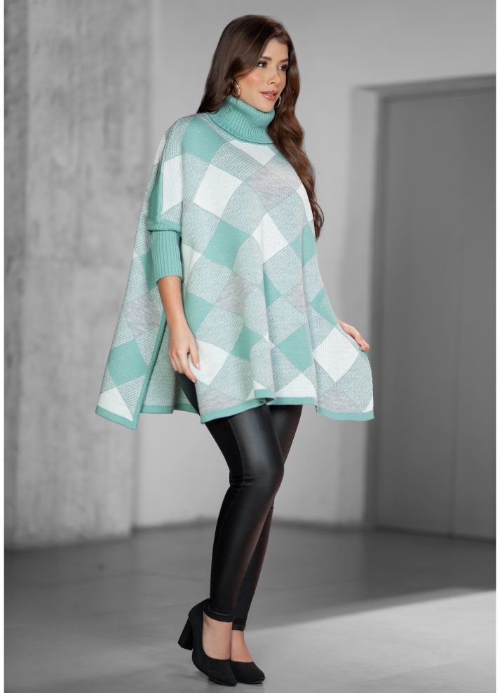 Ruana cuello tortuga en tejido