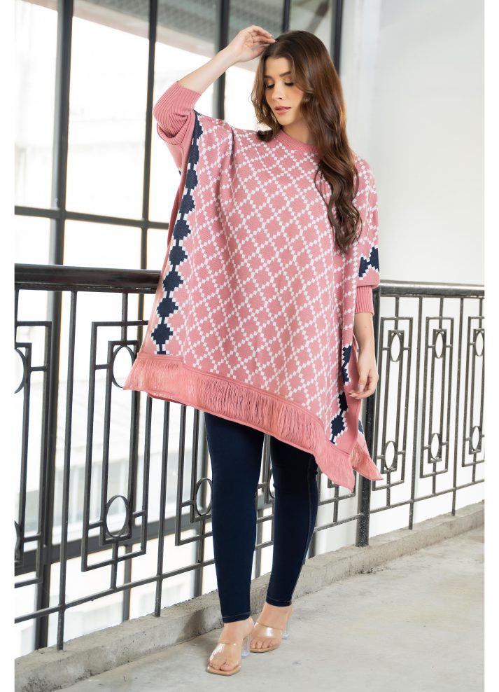 Ruana cuello tortuga con mangas tejida en hilo con rombos.